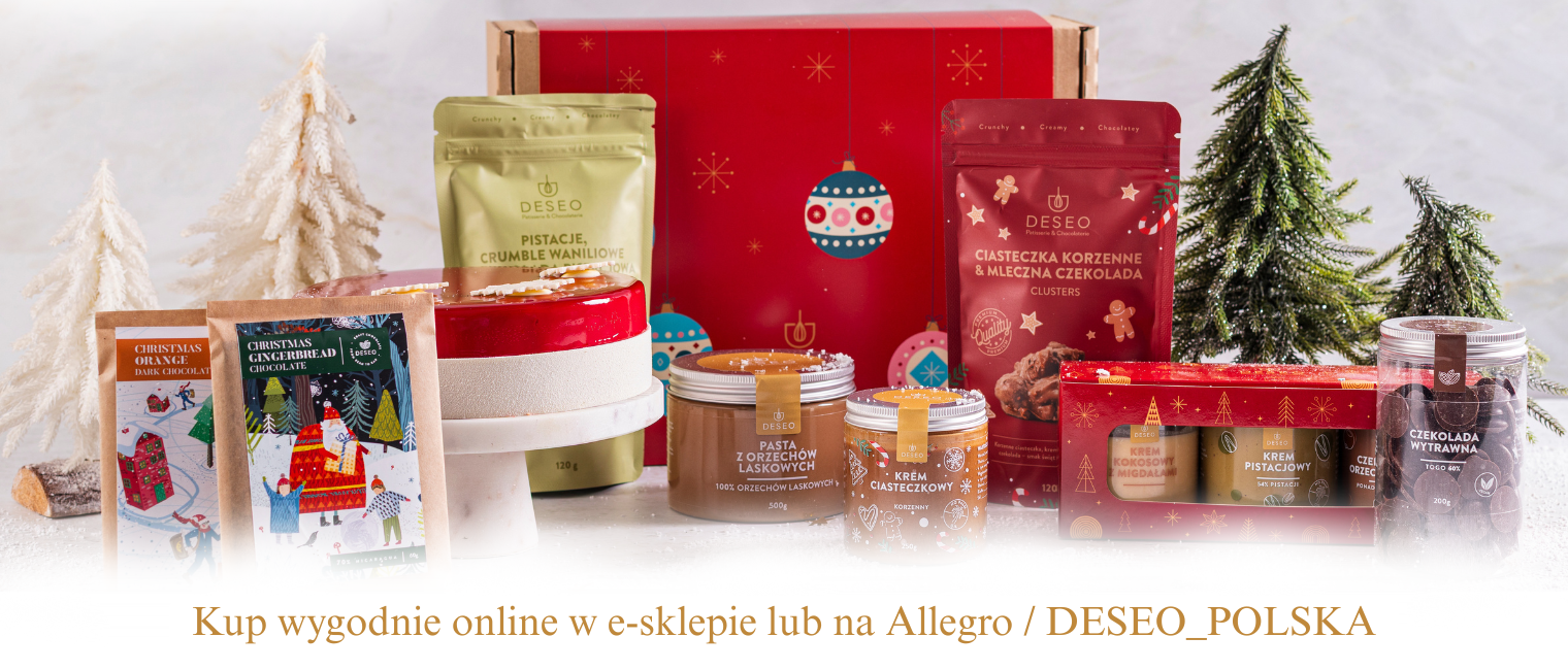 Zobacz wszystkieZałożycielami DESEO Patisserie & Chocolaterie są Łukasz Smoliński i Natalia Sitarska, para podróżników prowadzących od wielu lat najpopularniejszy w Polsce blog podróżniczo-kulinarny Tasteaway. Podczas swoich kulinarnych podróży po Europie i świecie zakochali się w deserach typu petit gateau oraz w nowoczesnym cukiernictwie. Właśnie dlatego w 2015 roku postanowili otworzyć własną cukiernię w Warszawie. Obecnie działa już jedenaście lokali pod marką DESEO w całej Polsce.