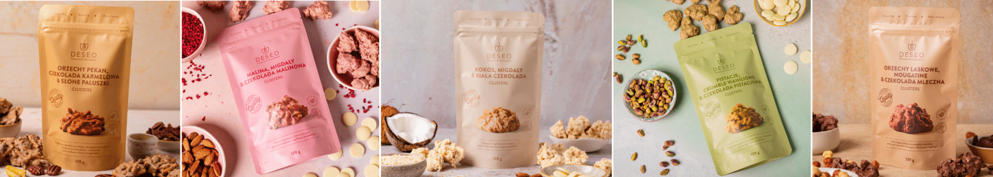 Przekąski to małe przyjemności, które poprawiają humor w ciągu dnia. Jedni wybierają coś słonego, inni owocowego, a jeszcze inni nie wyobrażają sobie chwili relaksu bez czegoś czekoladowego. My w DESEO wierzymy, że przekąska może być nie tylko pyszna, ale też jakościowa i wartościowa. Dlatego nasze Chocolate Clusters właśnie przeszły mały lifting – teraz znajdziecie je w nowych, pięknych opakowaniach, ale w środku wciąż czeka to, co najlepsze: chrupiące, czekoladowe szczęście!