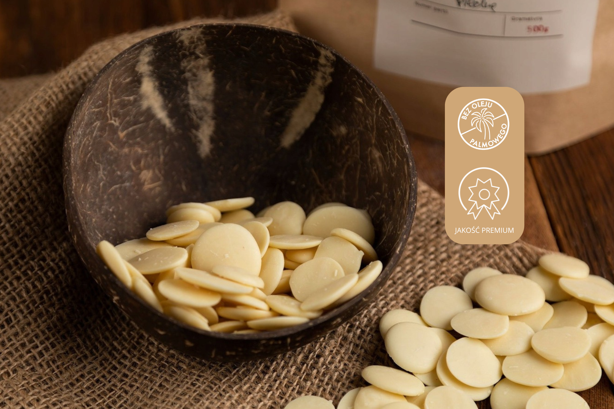 – white chocolate drops – intense taste of whole milk and creamy consistency.