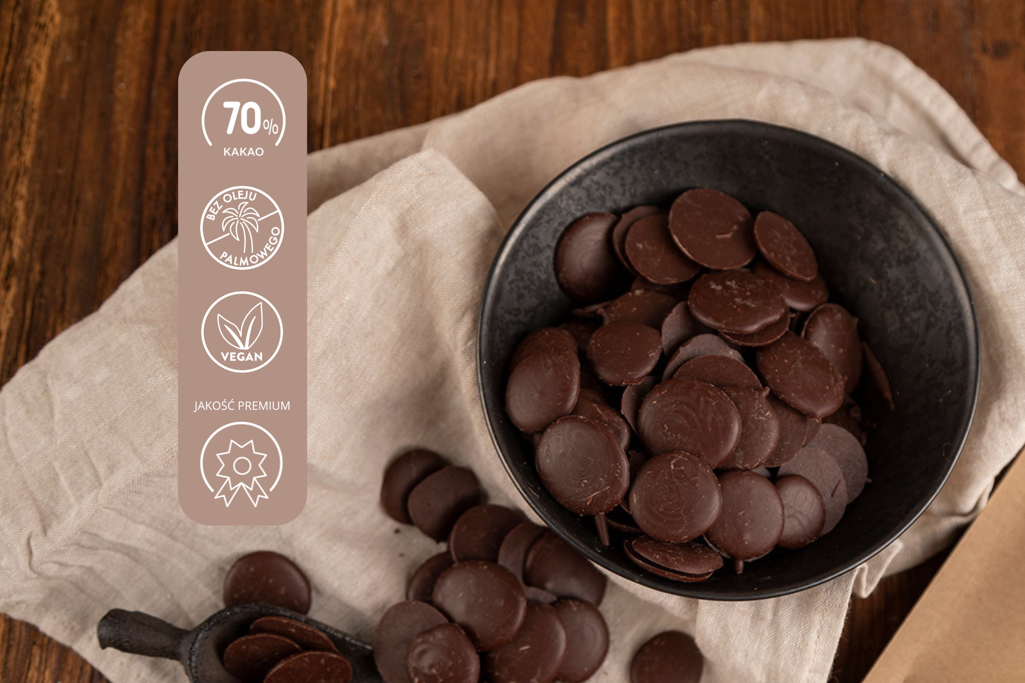 – dry chocolate Nicaragua 70% drops – has well-noticeable notes of dried fruit and a slightly nutty aftertaste. It is very rich in taste.