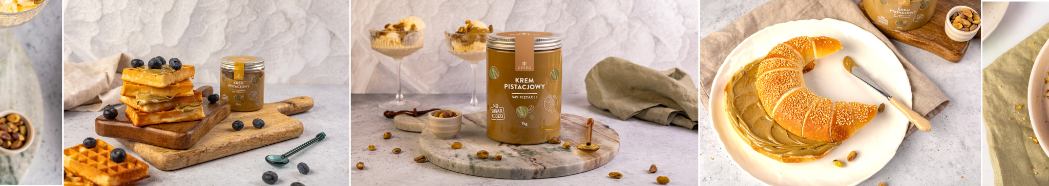 "Nasze kremy bez cukru powstają na bazie naszej bestsellerowej pasty pistacjowej 100%, którą od lat produkujemy w naszej Pracowni ze starannie wyselekcjonowanych orzechów" - podkreśla Łukasz Smoliński, Prezes i współwłaściciel DESEO Patisserie & Chocolaterie.