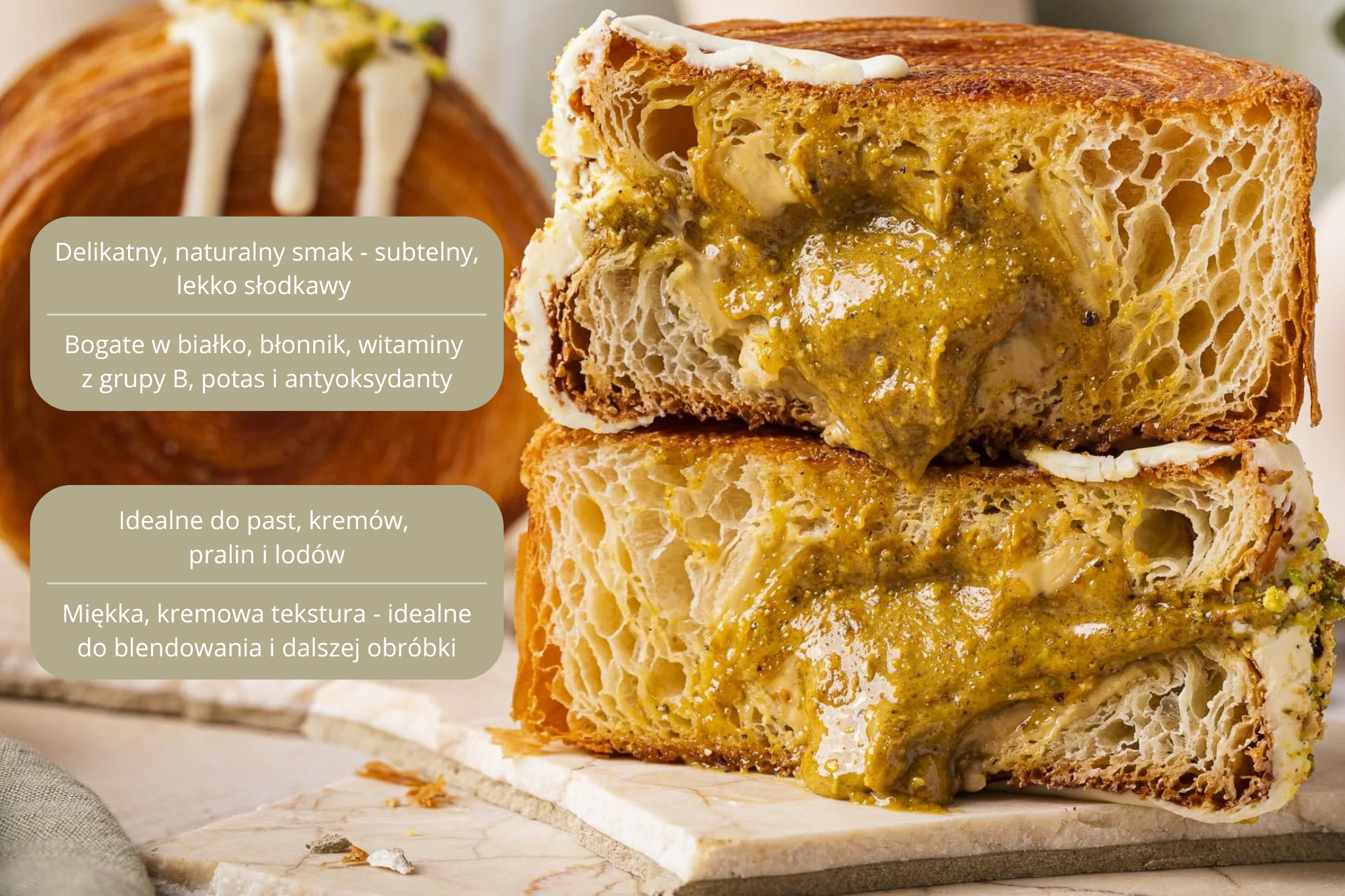 Surowe pistacje to źródło białka roślinnego, błonnika i zdrowych tłuszczów, wspierających pracę serca i układ nerwowy. Zawierają też przeciwutleniacze, witaminę B6 i potas, dzięki czemu mogą wspierać odporność oraz utrzymanie prawidłowego poziomu cukru we krwi.