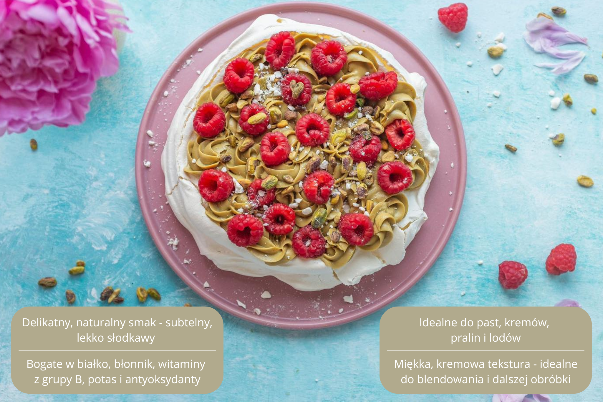 Surowe pistacje, nieprzetworzone i pełne wartości odżywczych, są bogatym źródłem nienasyconych kwasów tłuszczowych, magnezu, witamin z grupy B i antyoksydantów. Ich wyjątkowy smak – subtelnie orzechowy, z lekką słodyczą – świetnie komponuje się zarówno z daniami wytrawnymi, jak i słodkimi.