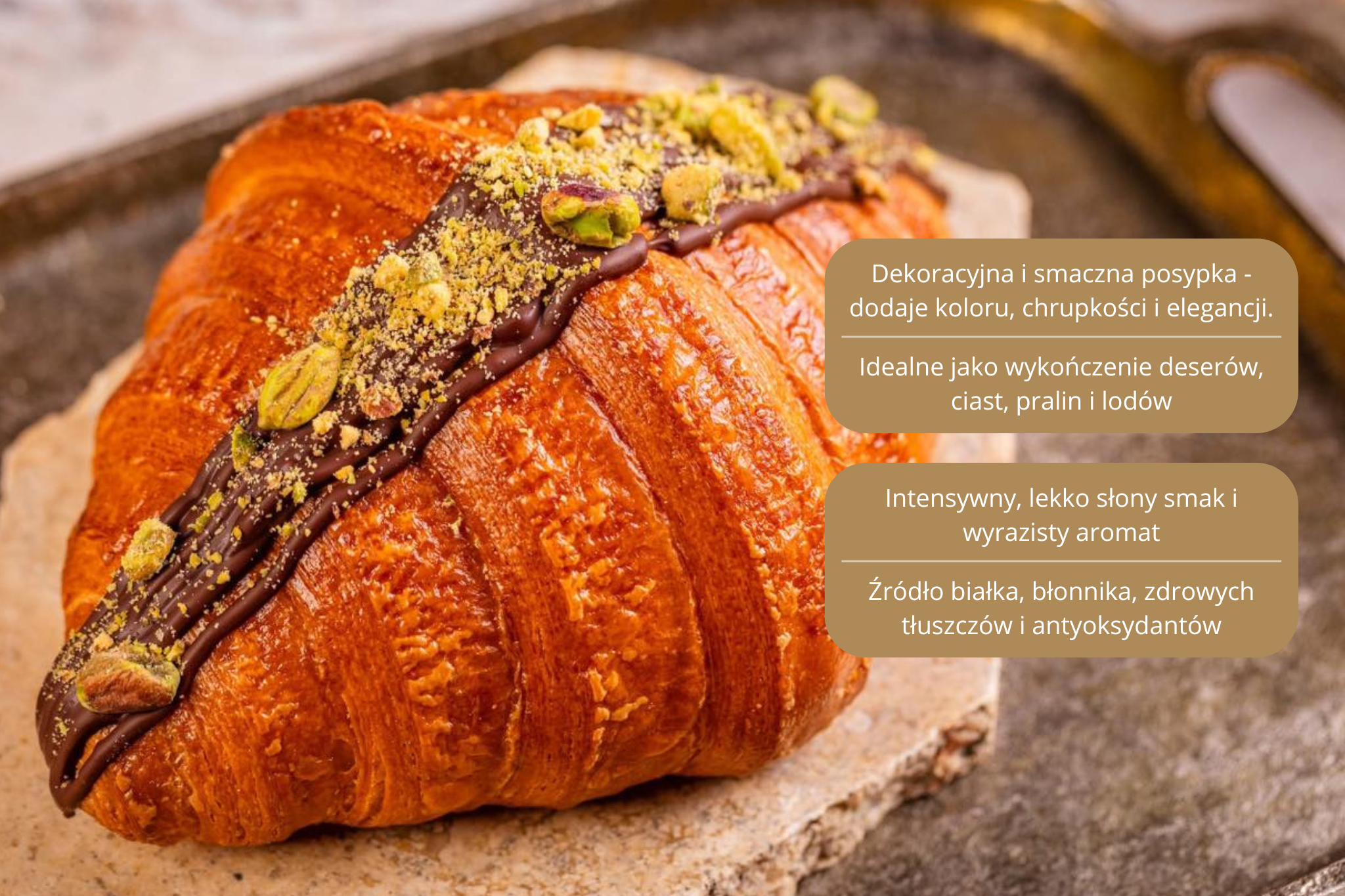 Pistacje są cenione za wysoką zawartość składników odżywczych: błonnika, potasu i zdrowych tłuszczów. Doskonale sprawdzą się w cukiernictwie, kuchni roślinnej oraz jako chrupiący dodatek do sałatek. Oszczędzasz czas i zyskujesz spójny efekt wizualny i smakowy w każdym daniu.