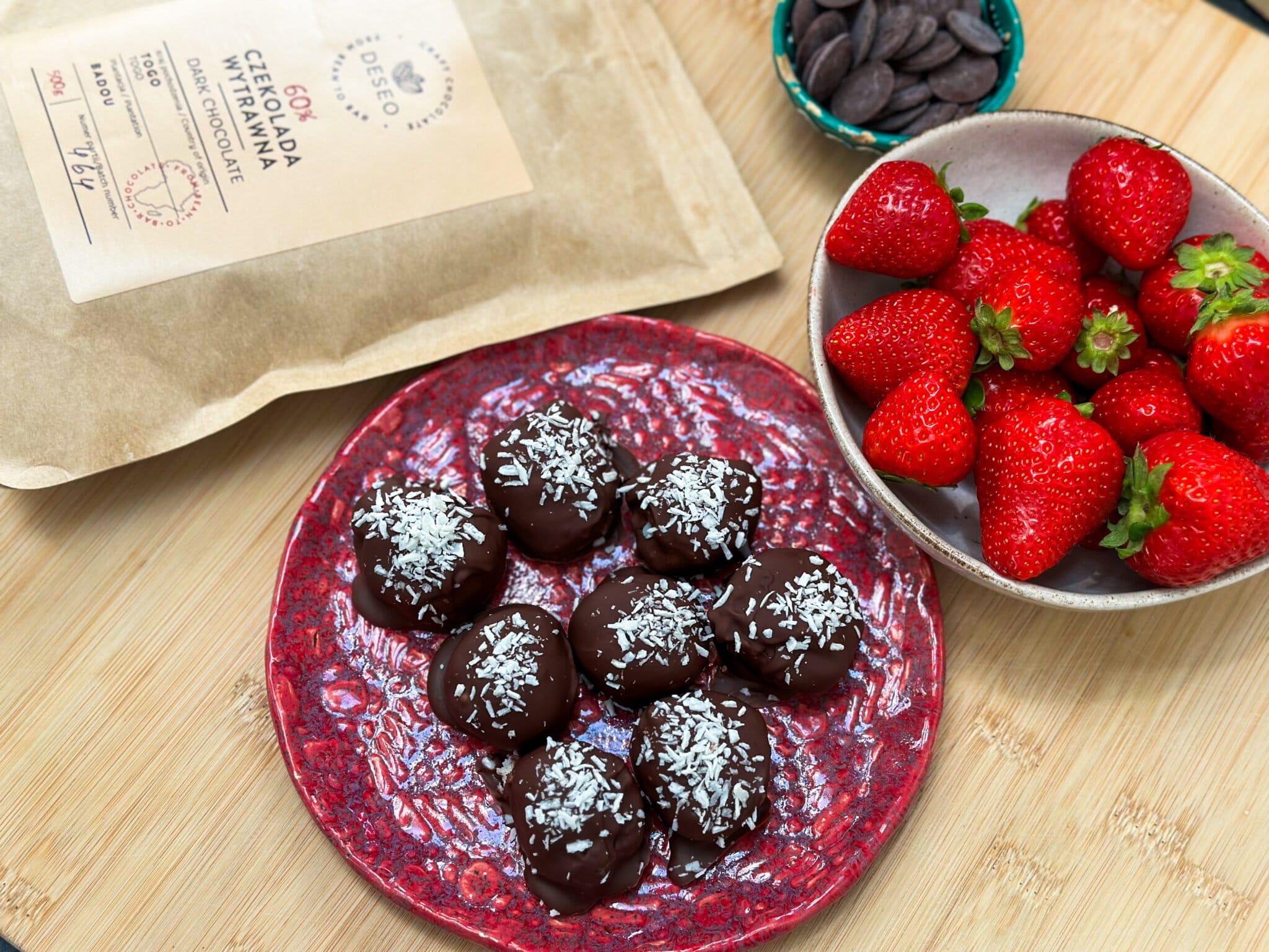 minutTruskawki w czekoladzie to klasyczek, kochany przez dzieci i dorosłych! Jednak co powiesz na to, aby nadać tej pysznej przekąsce nowy, troszkę niezwykły wymiar? Połączyliśmy świeże truskawki z czekoladą matcha! To deser inspirowany japońskimi słodkościami, w których matcha pojawia się bardzo często! Czekoladę przygotujesz sam na bazie białej czekolady bean-to-bar i sproszkowanej herbaty matcha. Smacznego!