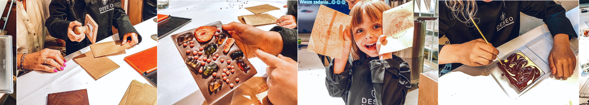 Odkryj magiczny świat czekolady razem z DESEO Patisserie & Chocolaterie! Nasze warsztaty czekoladowe to wyjątkowa przygoda dla małych łasuchów w wieku od 2 do 12 lat, dostępna zarówno w Warszawie, jak i Sopocie. Pod okiem doświadczonych chocolatierów, dzieci poznają fascynującą historię czekolady, własnoręcznie stworzą praliny i tabliczki, a także odkryją tajniki zdobienia słodkości.
